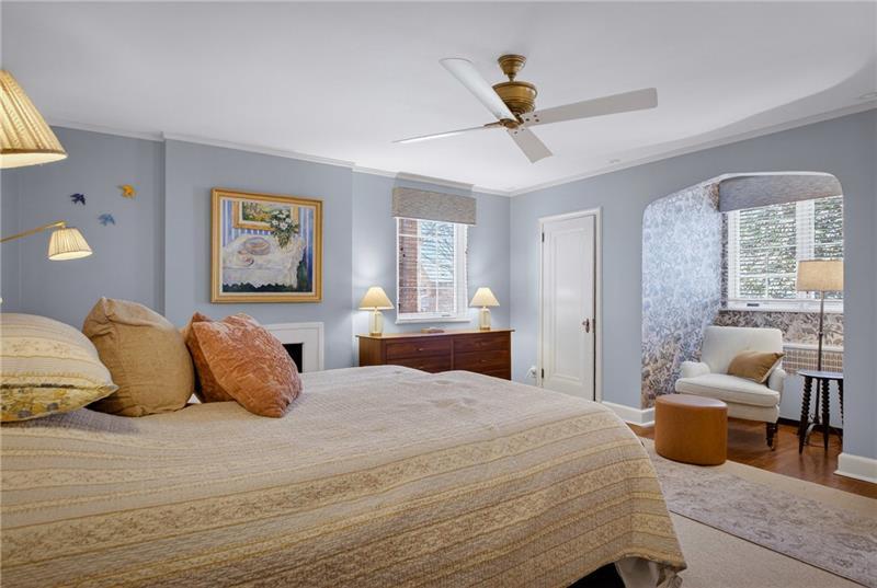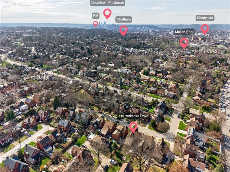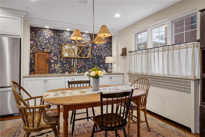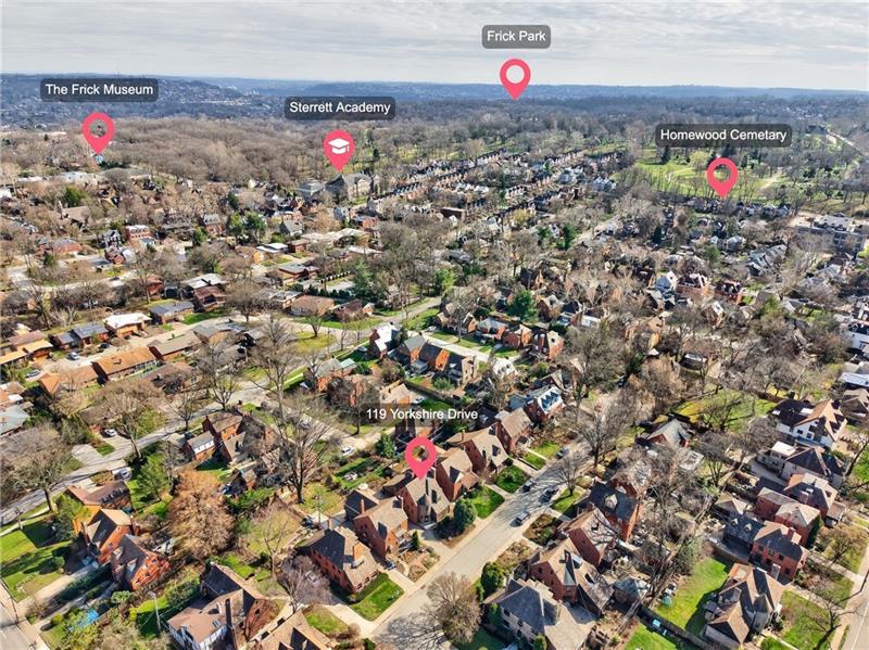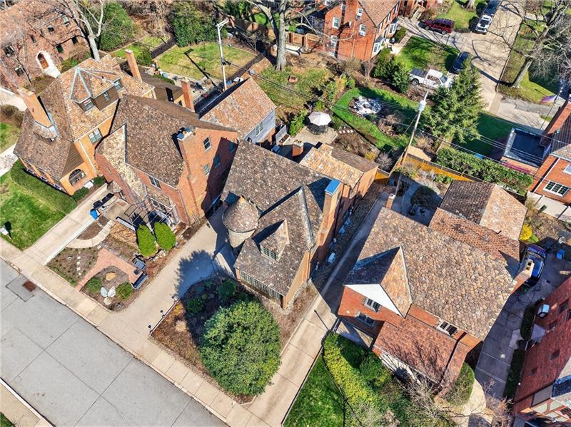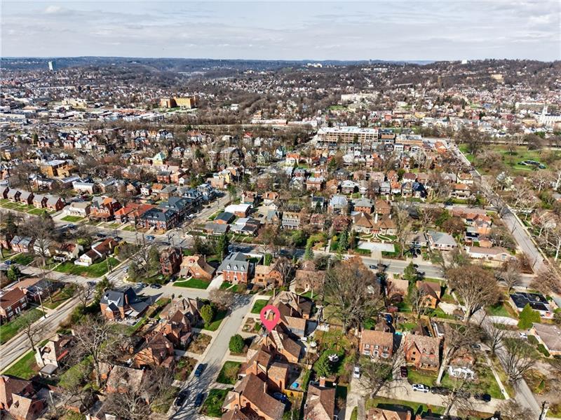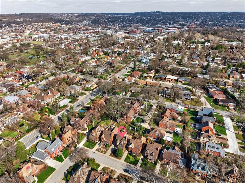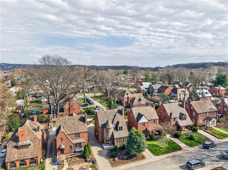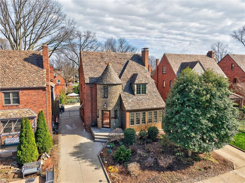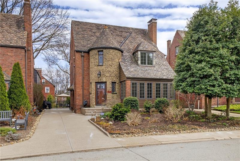 Nestled on a private cul-de-sac in the heart of Point Breeze, this updated 4-bedroom, 3.5-bath brick and stone home blends classic architecture with modern functionality in one of Pittsburgh's most sought-after neighborhoods. A distinctive turret-style entry introduces timeless details including a curved staircase with wrought-iron banister, original moldings, arched openings, and stained glass accents. The main level offers excellent flow for everyday living and entertaining, featuring a spacious living room, sunlit front sitting room (ideal for a home office), and a centrally located, updated kitchen with granite countertops, custom cabinetry, stainless steel appliances, and direct connection to the dining area with built-in storage. Hardwood floors, updated lighting, and integrated Bose speakers enhance the home's comfort and livability. The second floor includes three bedrooms, highlighted by a generous primary suite with updated en suite bath and sitting area. A full hall bath and flexible secondary bedroom layout provide additional functionality. The third floor offers a private suite with bedroom, walk-in closet, and full bath"”ideal for guests, office, or bonus space. Outdoor living features a brick patio, built-in fire pit, mature landscaping, and a rare, level yard for the neighborhood. A two-car attached garage adds convenience. Located minutes from Frick Park, Mellon Park, and The Frick Pittsburgh, with easy access to Shadyside, Squirrel Hill, Bakery Square, major hospitals, universities, and downtown.
