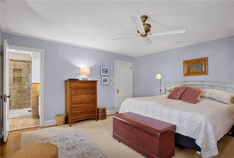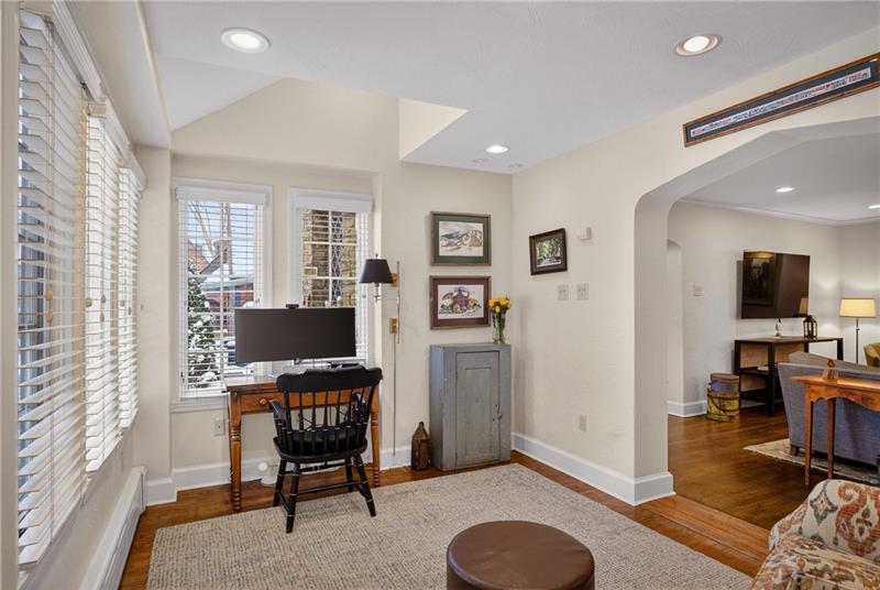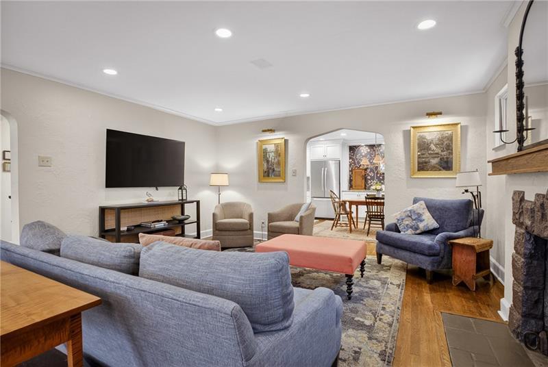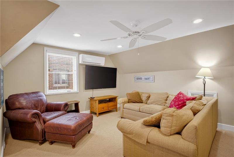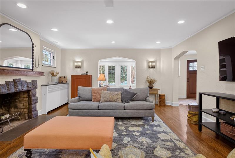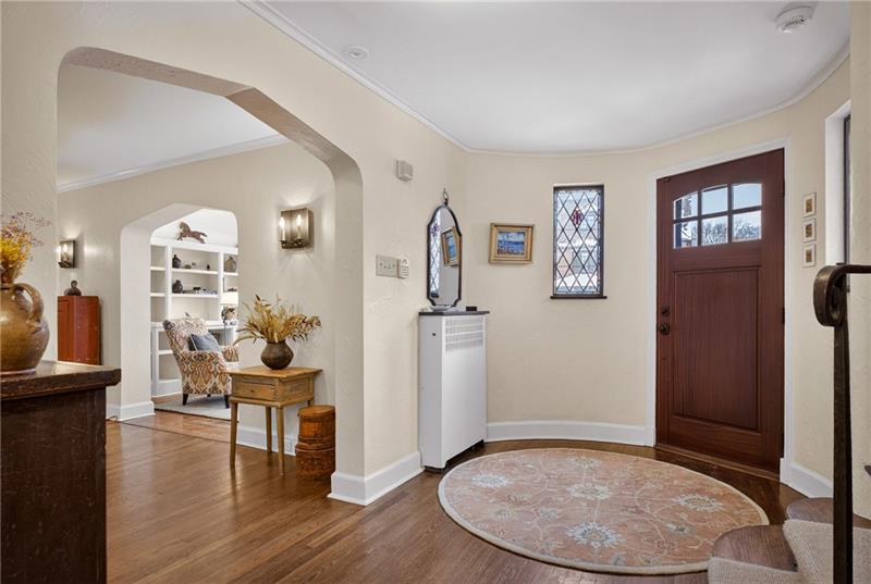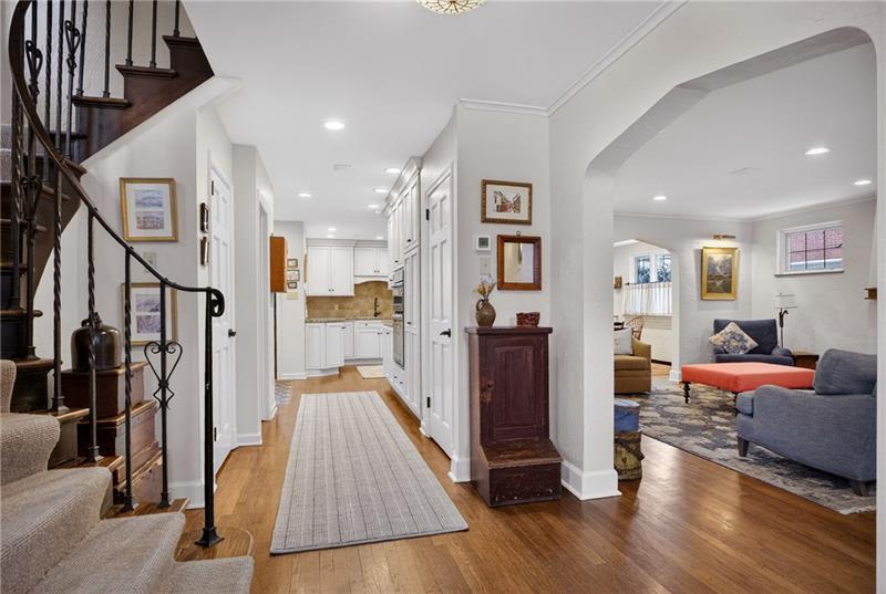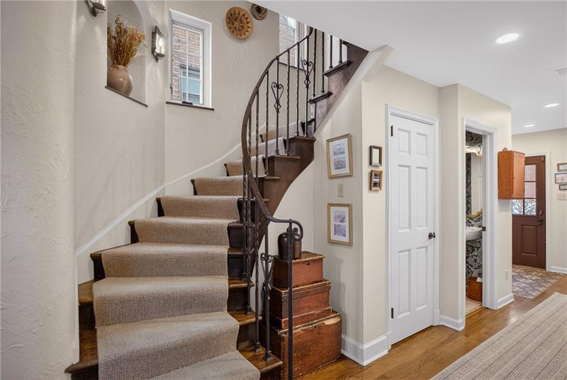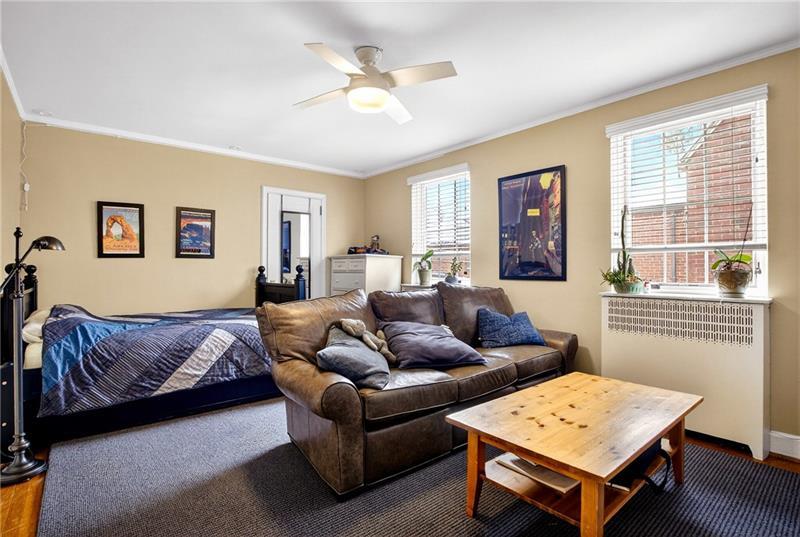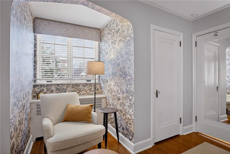 Nestled on a private cul-de-sac in the heart of Point Breeze, this updated 4-bedroom, 3.5-bath brick and stone home blends classic architecture with modern functionality in one of Pittsburgh's most sought-after neighborhoods. A distinctive turret-style entry introduces timeless details including a curved staircase with wrought-iron banister, original moldings, arched openings, and stained glass accents. The main level offers excellent flow for everyday living and entertaining, featuring a spacious living room, sunlit front sitting room (ideal for a home office), and a centrally located, updated kitchen with granite countertops, custom cabinetry, stainless steel appliances, and direct connection to the dining area with built-in storage. Hardwood floors, updated lighting, and integrated Bose speakers enhance the home's comfort and livability. The second floor includes three bedrooms, highlighted by a generous primary suite with updated en suite bath and sitting area. A full hall bath and flexible secondary bedroom layout provide additional functionality. The third floor offers a private suite with bedroom, walk-in closet, and full bath"”ideal for guests, office, or bonus space. Outdoor living features a brick patio, built-in fire pit, mature landscaping, and a rare, level yard for the neighborhood. A two-car attached garage adds convenience. Located minutes from Frick Park, Mellon Park, and The Frick Pittsburgh, with easy access to Shadyside, Squirrel Hill, Bakery Square, major hospitals, universities, and downtown.