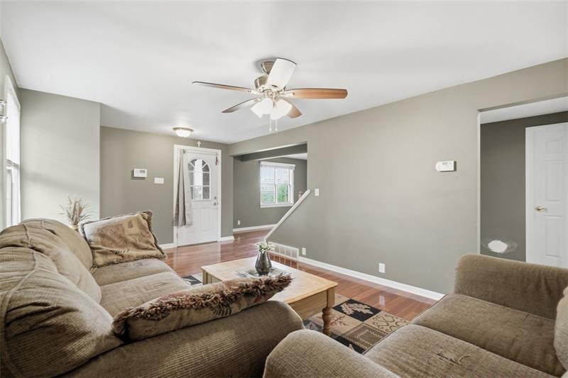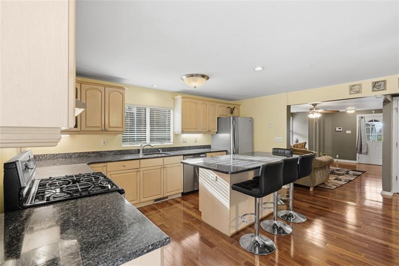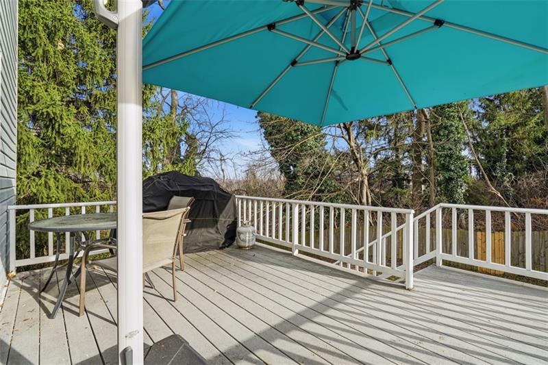 Beautiful 3-bedroom, 2 full bath, 2 1/2 bath home offering a warm & inviting feel from the moment you enter. Hardwood floors, granite countertops, stainless steel appliances, and a kitchen with built-in cabinetry complement the open floor plan, making it ideal for entertaining. Spacious living & dining areas provide great flow for gatherings & everyday living. The primary bedroom features an en suite bath & a walk-in closet. A finished lower-level game room adds additional living space w/ walk-out access to the yard. A 21x22 addition over the garage offers versatile space for a family room or bonus area. The oversized 21x22 garage features a 10-foot garage door, perfect for larger vehicles. Lots of storage. Enjoy the rear deck overlooking fenced yard on a private .38-acre lot. Located on a quiet dead-end street at the end of the road for added privacy w/ views of the Pittsburgh skyline. Minutes from downtown Pittsburgh. New roof (2025) and new sewer line (2025).