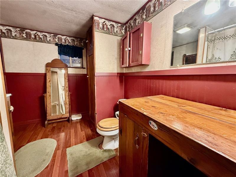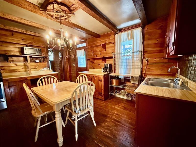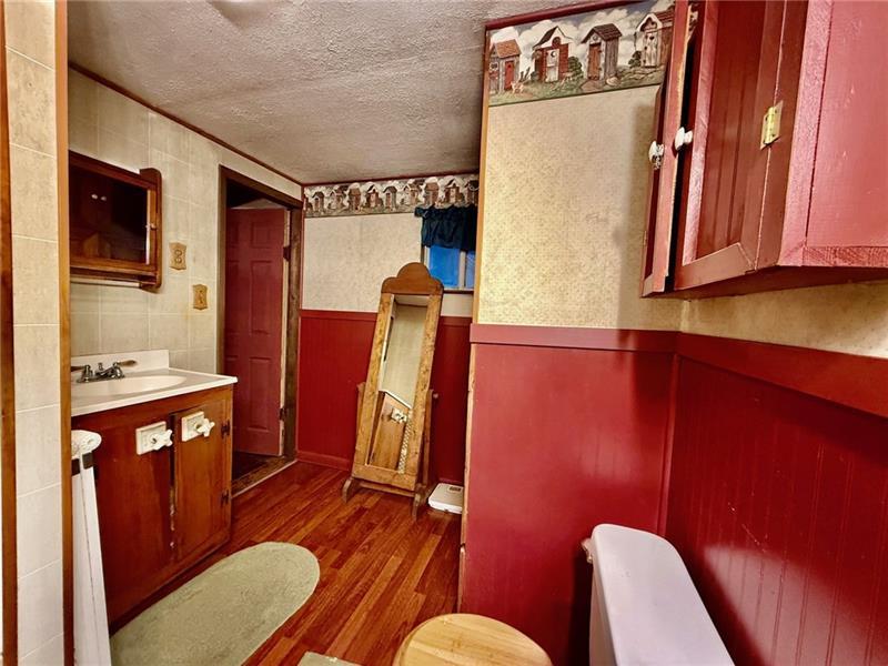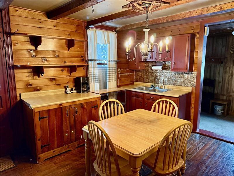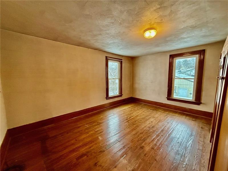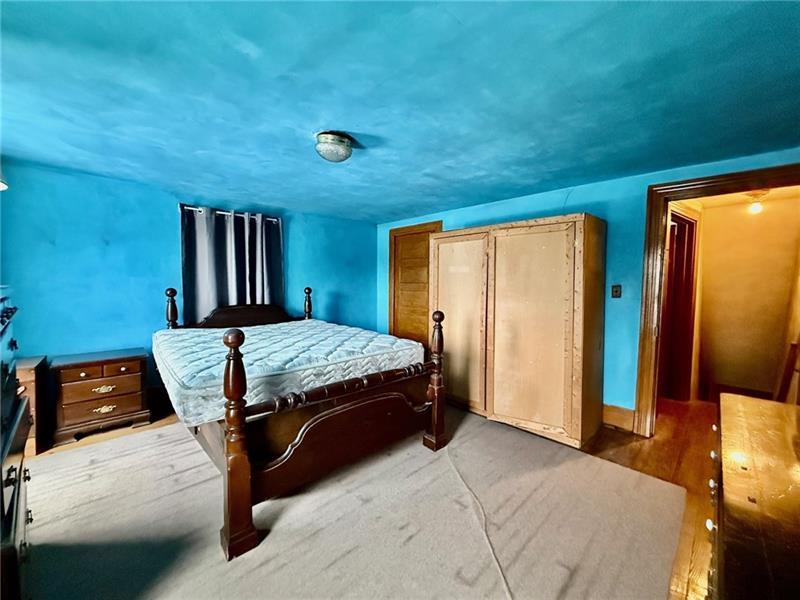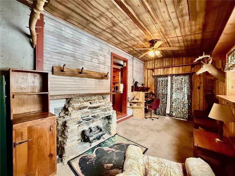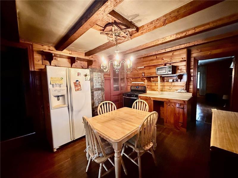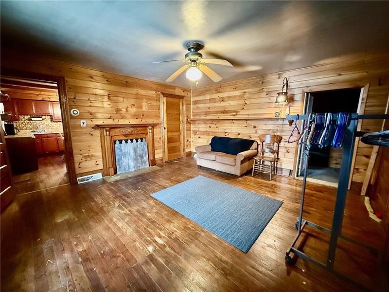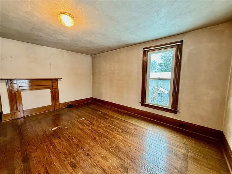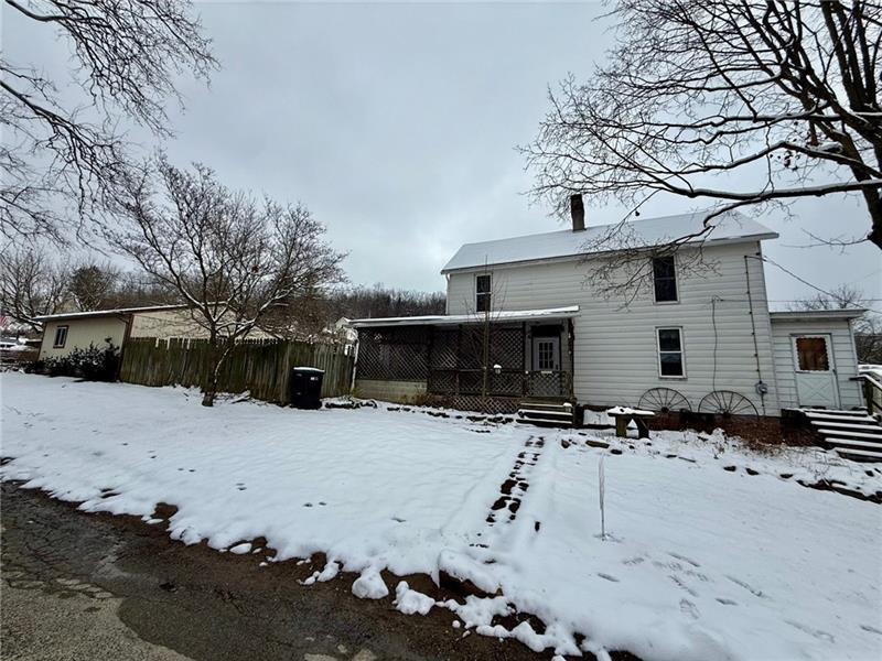 Step into this charming home filled w/ character & spacious living areas throughout. The primary bedroom features a beautiful vaulted oak ceiling & an oversized closet, offering a warm and inviting retreat. The living room highlights the home's original hardwood floors, leading into a functional kitchen with a gas stove, refrigerator, microwave, and classic built-in cabinetry. A cozy additional room with a gas fireplace adds extra living space, along with a covered front porch perfect for relaxing. The property also includes a backyard concrete patio, a two-car garage, and a storage shed. A versatile back room(formerly used as a hair salon)provides great potential for a home business or hobby space. The 1st floor has a convenient laundry area & full bath, while the 2nd floor offers two generously sized bedrooms. Full of charm and original details, this home is ready for its next owner to add their personal touch and make it shine. Public water & Public Sewer. Sold as-is, where-is.