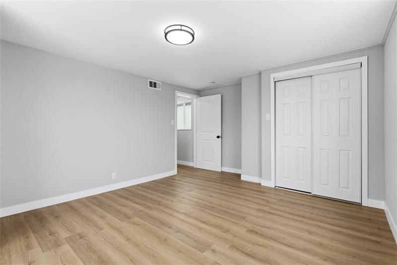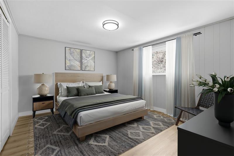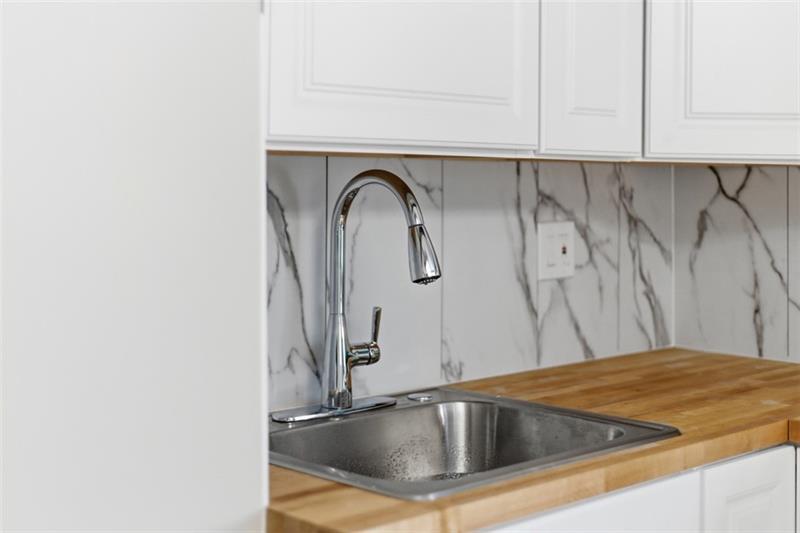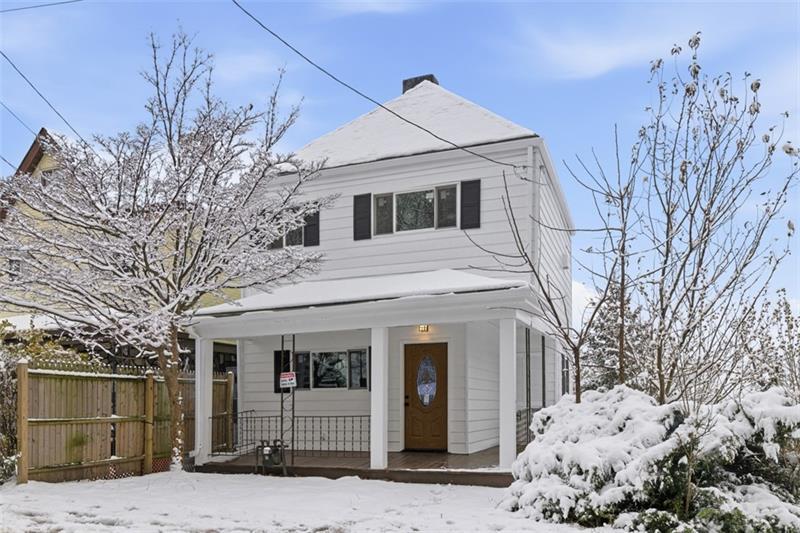 Stunning full-scale renovation in the Edgewood/Regent Square district. This hillside home blends modern luxury w/ architectural charm, framed by treetop views & walkable access to local neighborhoods. Livingroom has a refinished fireplace & all-new recessed lighting. The kitchen features white shaker cabinets, stainless steel appliances, abundant storage, custom wood-trim ceiling, & chandelier. Kitchen has a door to private balcony. Upper level offers two bright bedrooms, a fully redesigned tiled bath, generous closets, & attic access. Powder room on main level. Renovated third bedroom in lower level w/ a new full bath, & laundry hookups w/ walkout to a concrete patio & backyard. Mechanical upgrades include new central air, updated furnace, upgraded electrical, new plumbing & gray water lines, & new sewer clean-out. New flooring, paint, trim, 5newwindows, doors, and exterior improvements. Located near Frick Park, Regent Square, & Edgewood Towne Center. Near all major highways & routes.