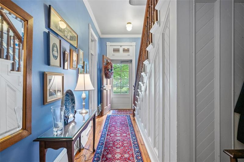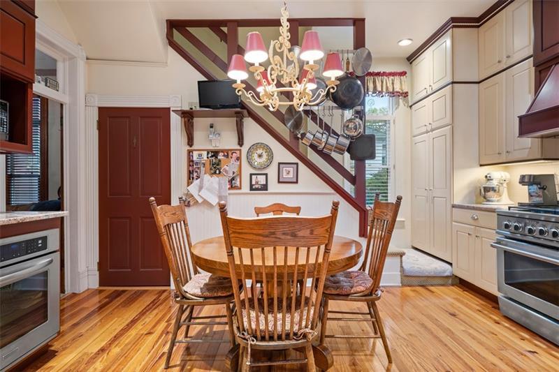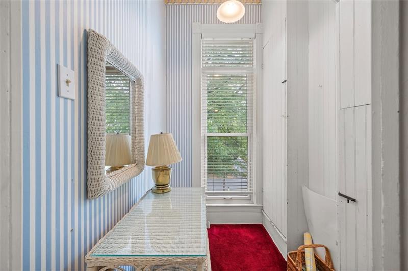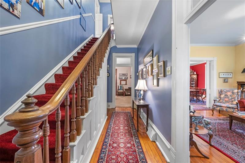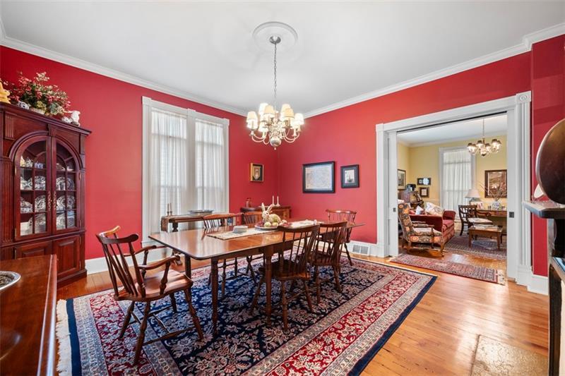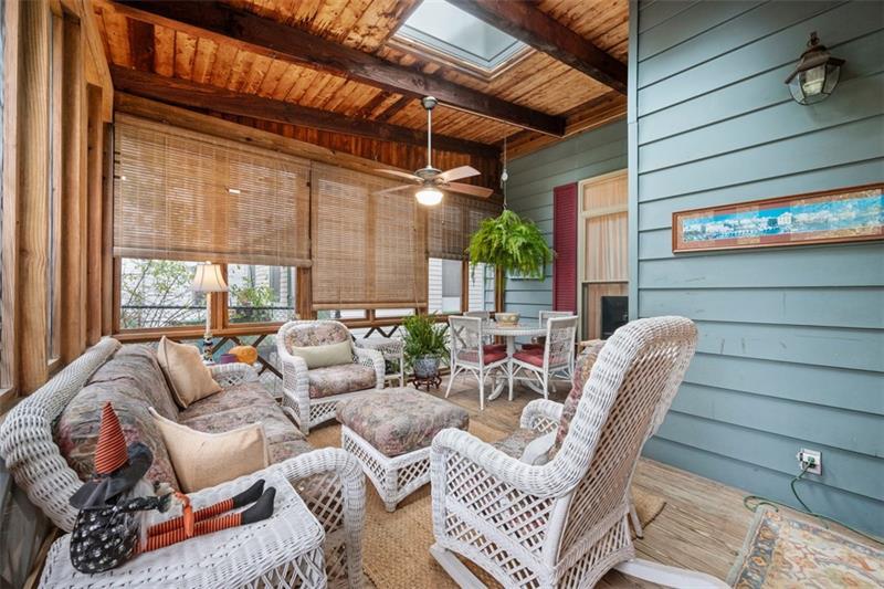 This charming Victorian two-story home offers 2,444sqft. of living space & timeless character. The inviting covered front porch welcomes you inside, where you'll find nearly 11-foot ceilings, pine wood floors, and large floor-to-ceiling windows that fill the rooms with natural light. The home features a 15x15 screened-in porch addition with skylights, perfect for relaxing or entertaining. Inside, original details such as transom windows and pocket doors between the dining and family rooms add to the home's historic charm. Floor to ceiling Pella windows throughout. The updated kitchen connects conveniently to a first-floor laundry room & back staircase. Very Spacious Bedrooms. Primary bedroom has an en-suite primary bath. Updated electrical box. Upstairs, spacious bedrooms continue the home's warm feel. The freshly painted 20x20 garage offers plenty of storage. Front and rear staircases to 2nd floor. This home blends historic style with modern updates in a highly functional way